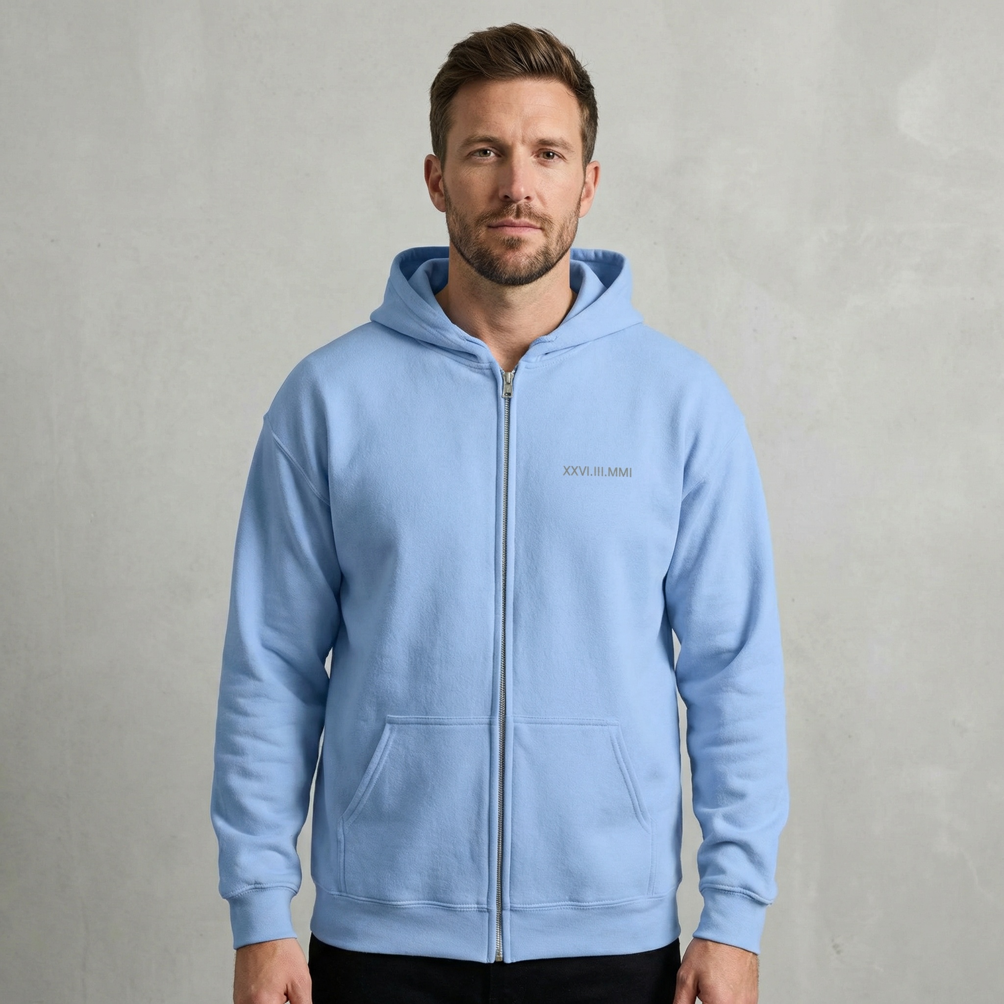 See lukuga pusa, mis on mugav ja kvaliteetne igapäevaseks kandmiseks, sisaldab endas diskreetselt ka väga personaalset tähendust. Vasakule rinnale tikitakse sinu jaoks oluline kuupäev rooma numbrites – näiteks kohtumine, abiellumine või mõne muu elu muutnud sündmuse kuupäev. Paremale varrukale lisame diskreetselt initsiaali või nime. Minimalistlik detail, mis kannab endas isiklikku lugu.