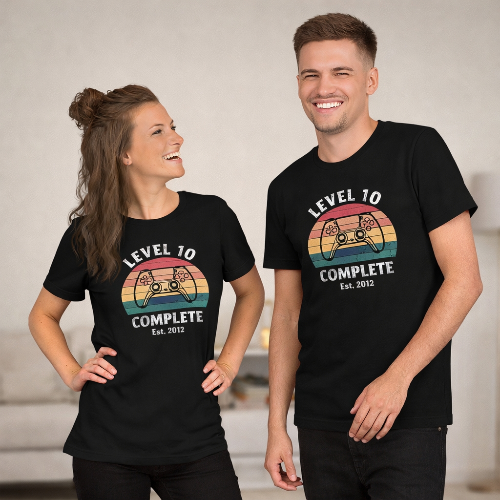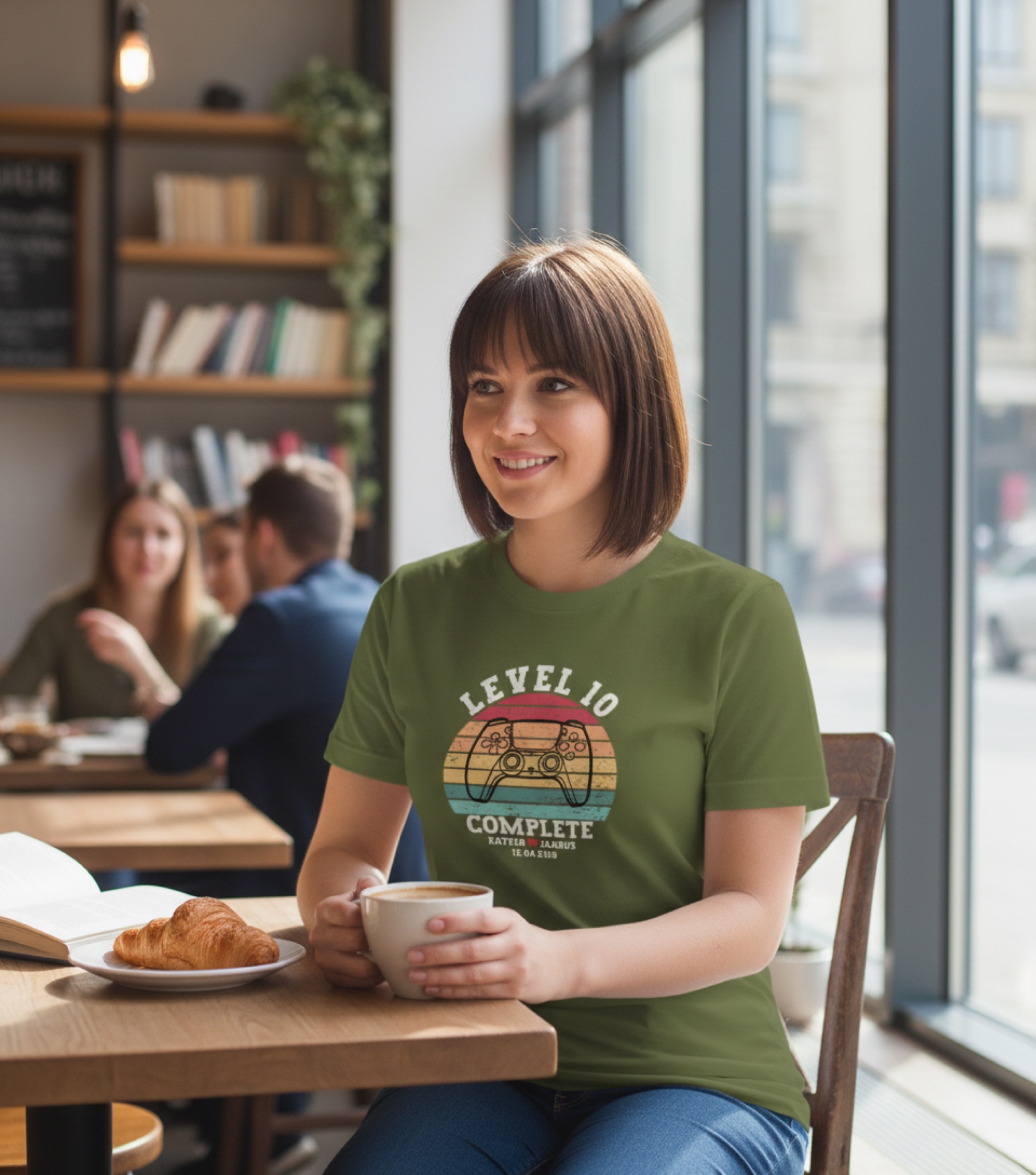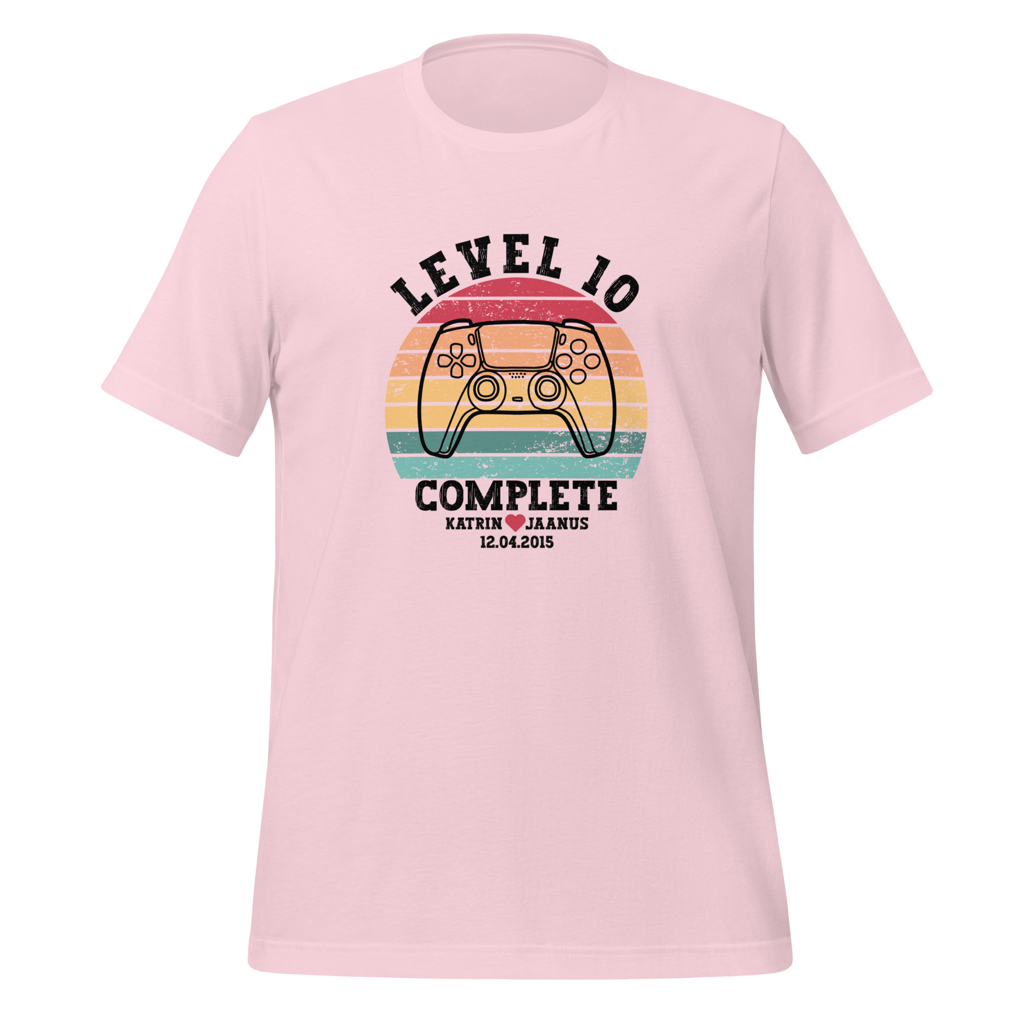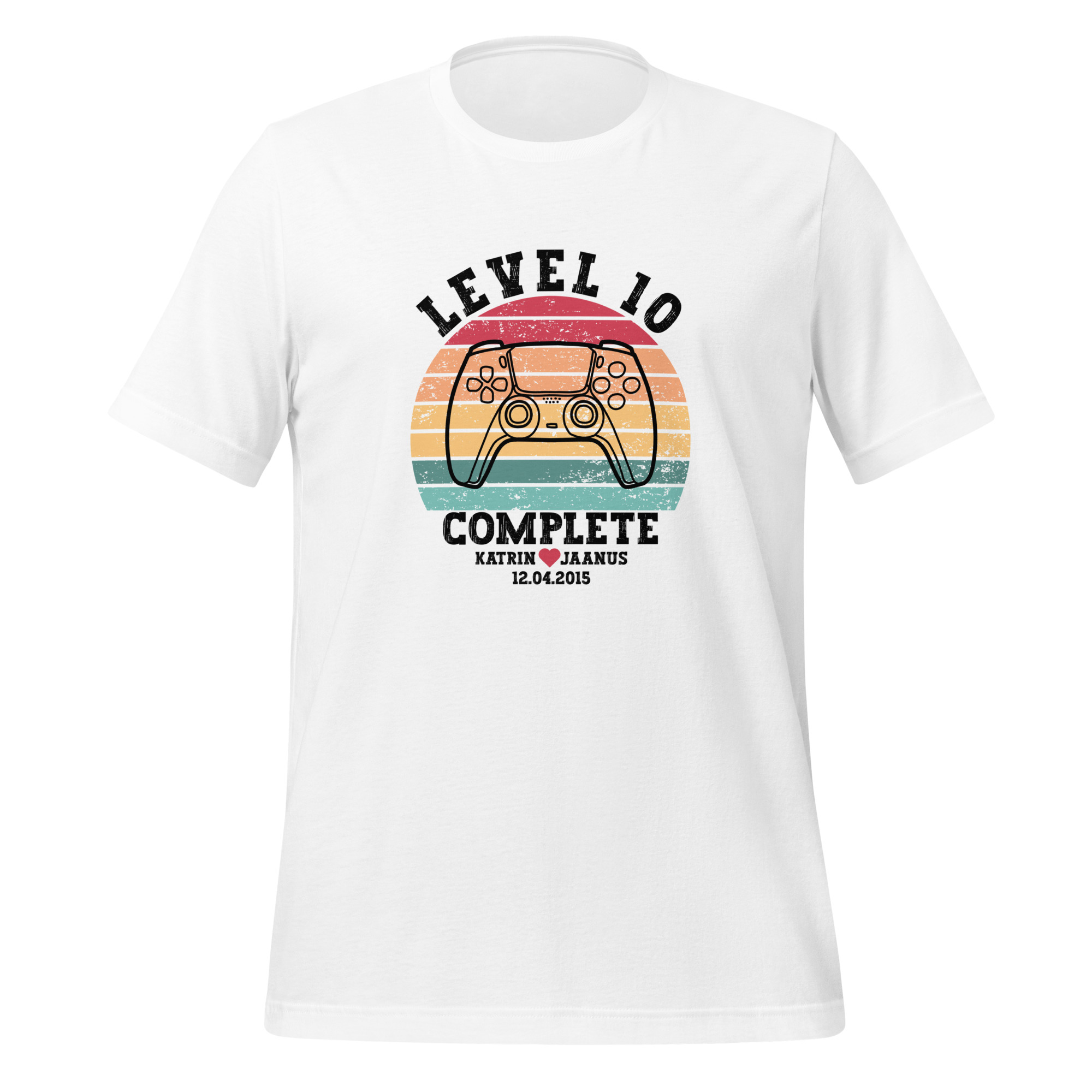 Tee enda või kingitusena kellegi teise suhte- või pulma-aastapäev eriliseks selle personaliseeritud T-särgiga! Lisa särgile abielus/kooselus oldud aastate number (Level …), nimed ning see tähtis kuupäev, mil kõik alguse sai!