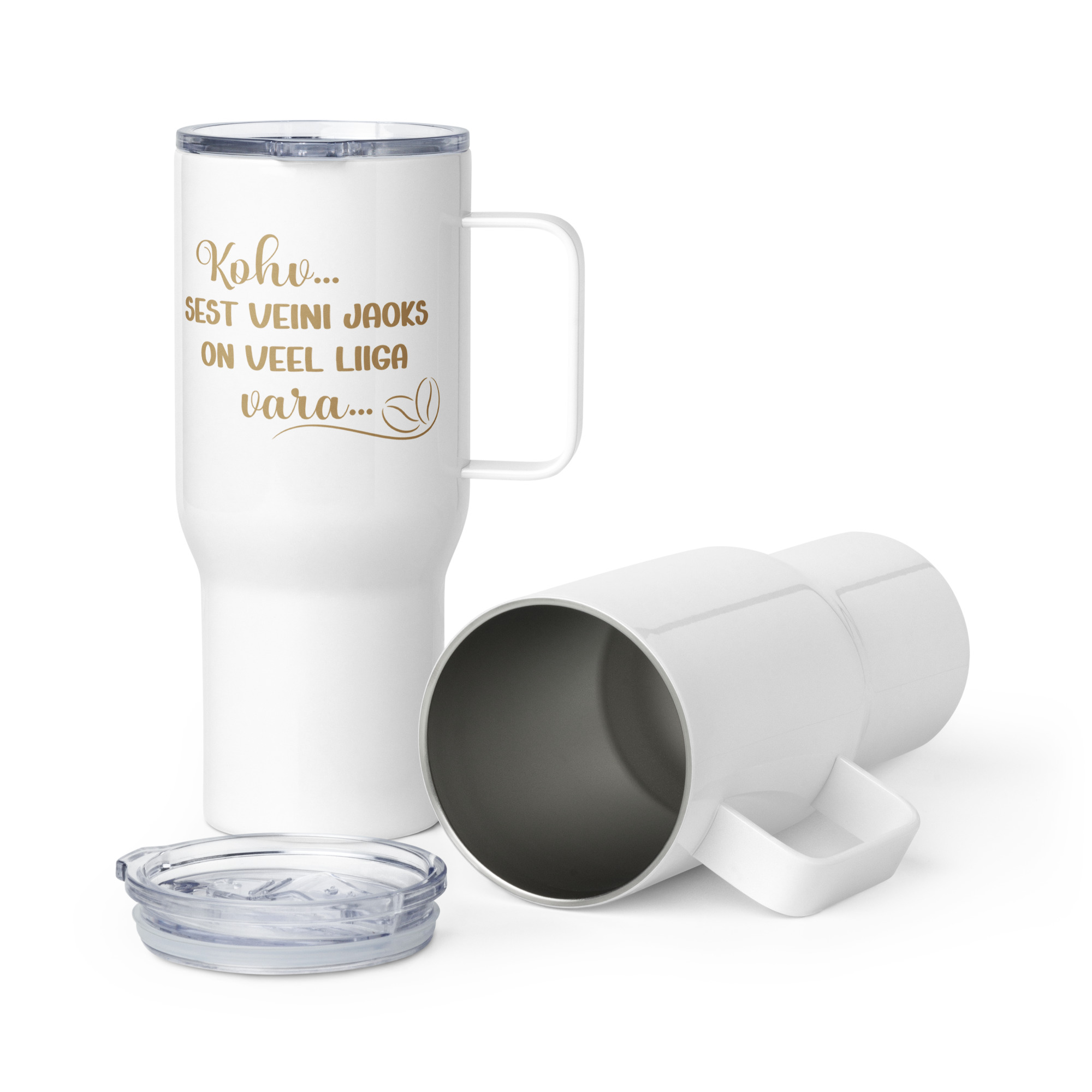 Termokruus tekstiga “Kohv..sest veini jaoks on veel liiga vara.”