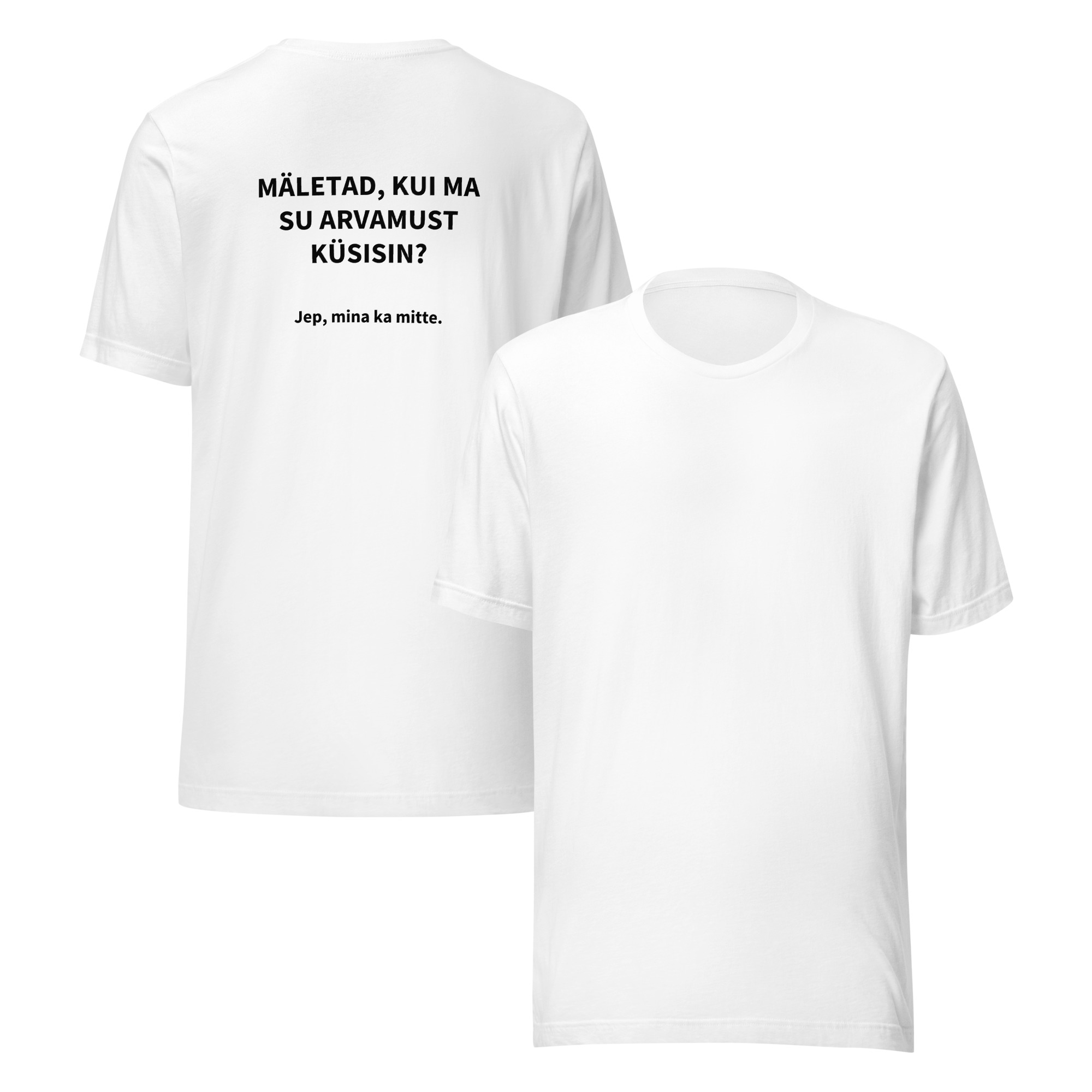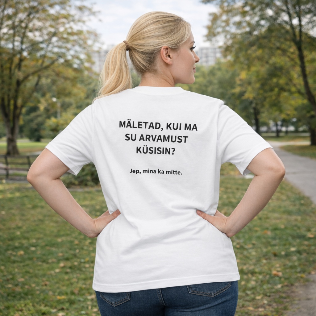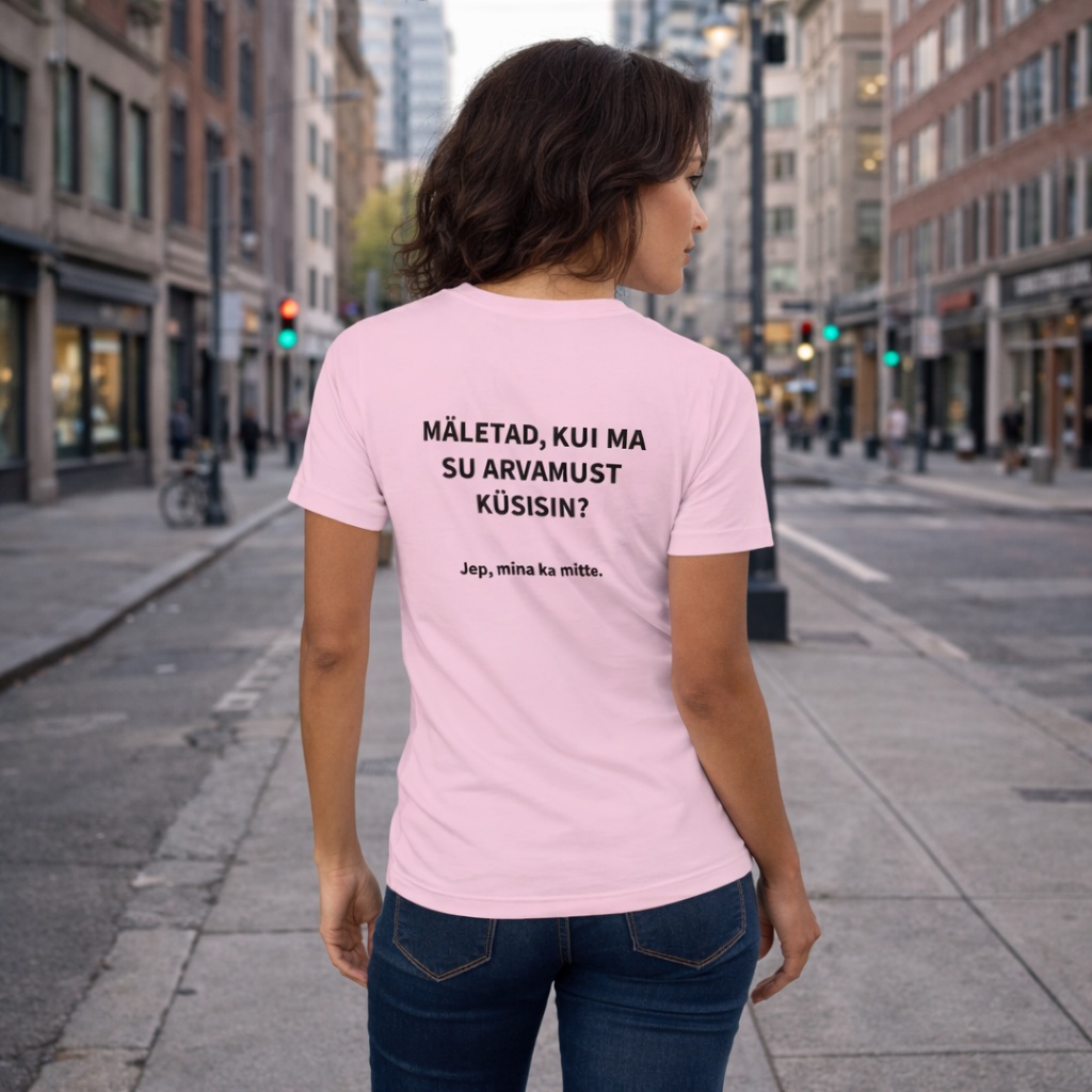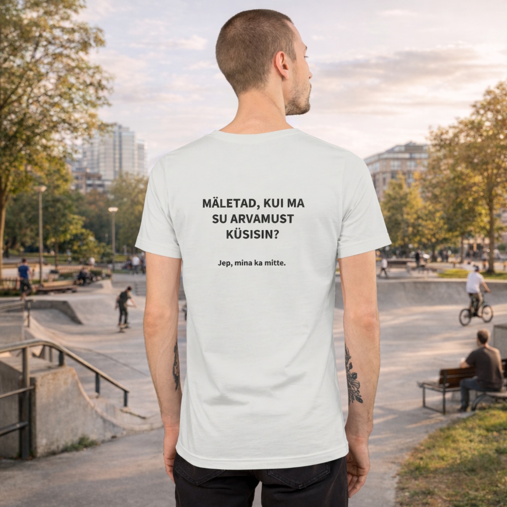 Unisex T-särk kirjaga seljal “Mäletad, kui ma su arvamust küsisin?”