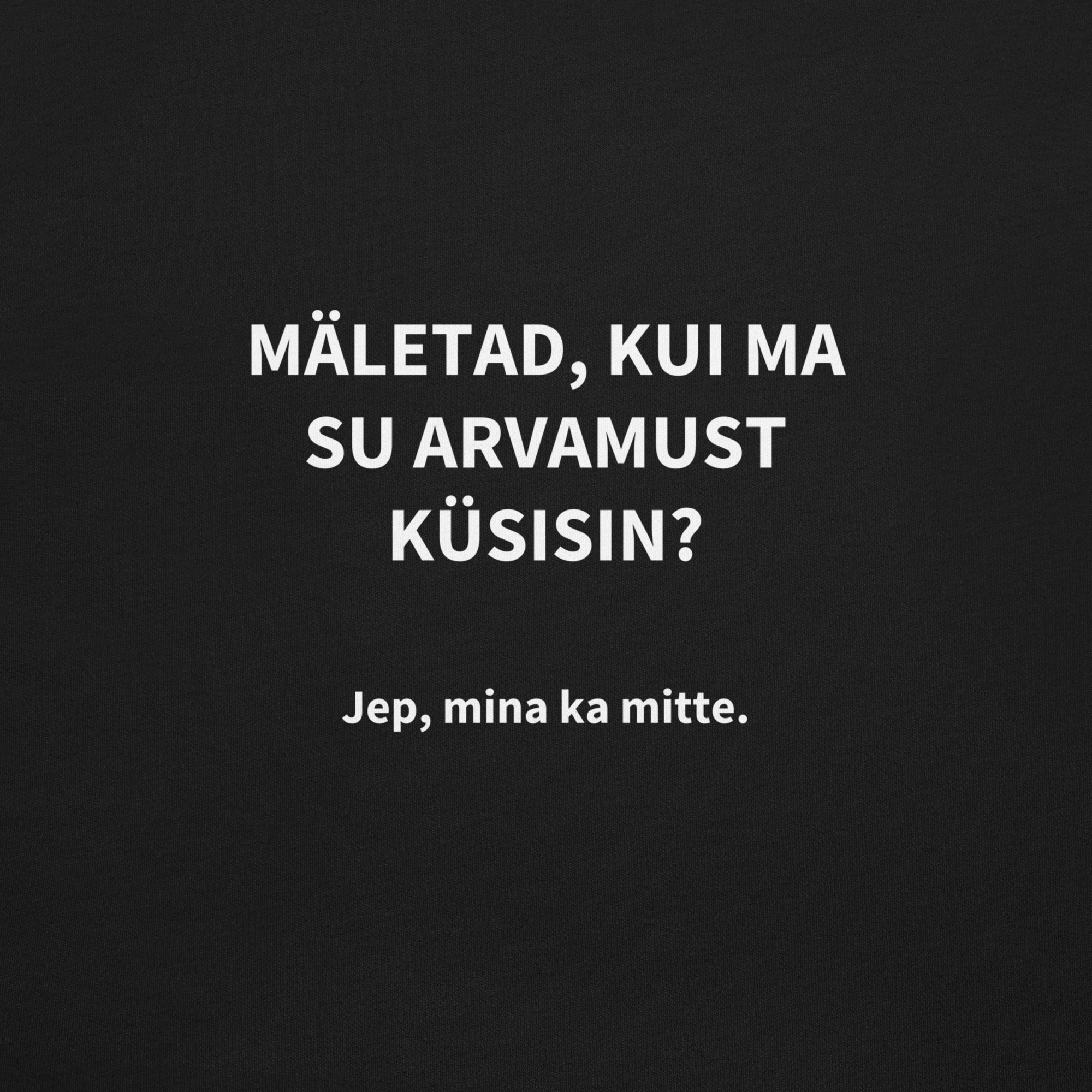 Loodud neile, kes hindavad otsekohesust ja teravat huumorit. Seljale trükitud tekst “Mäletad, kui ma su arvamust küsisin? Jep, mina ka mitte.” toob kindlasti teistele naeru näole, aga annab samal ajal ka selge signaali – sa oled selline, nagu oled ja sind ei huvita teiste arvamus.