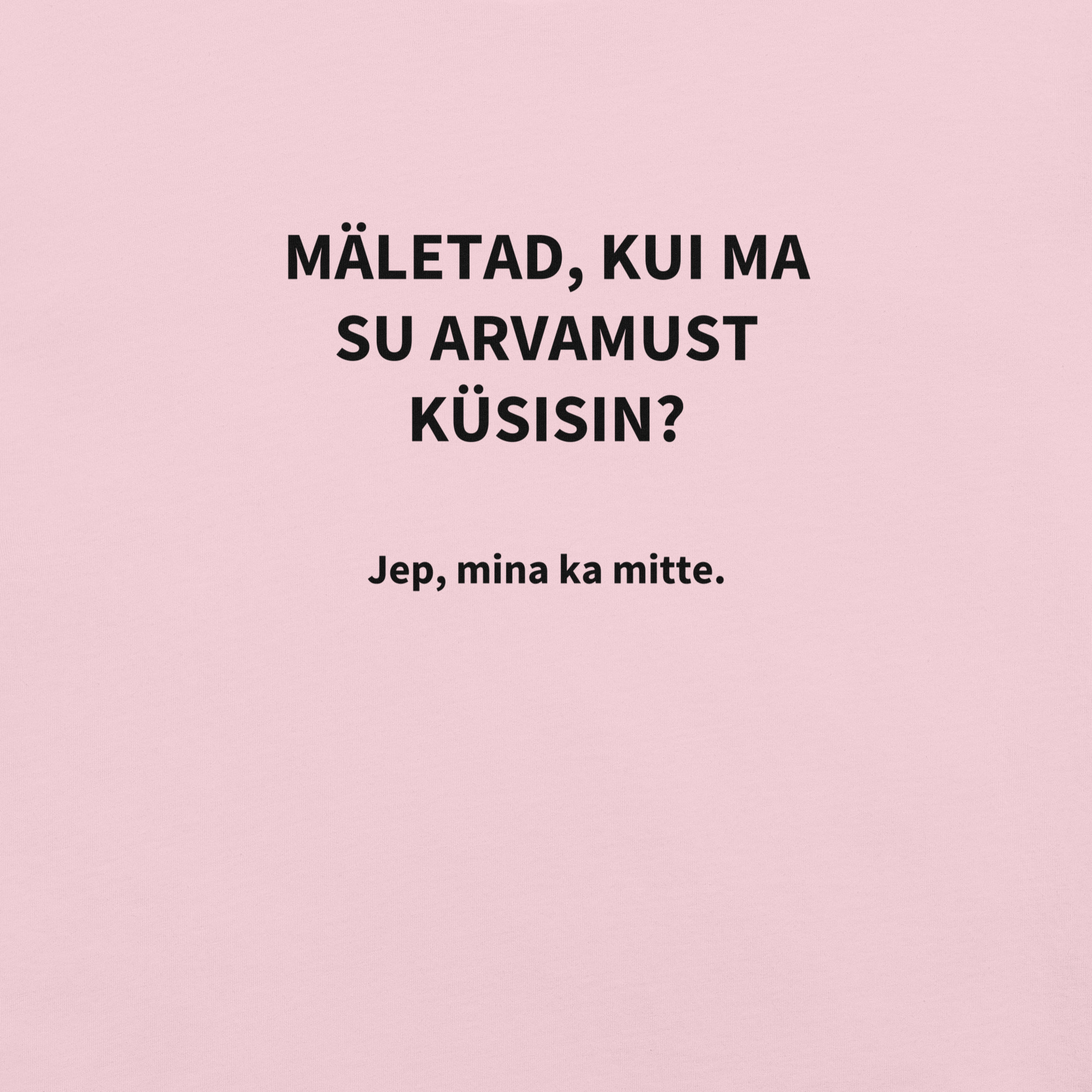 Loodud neile, kes hindavad otsekohesust ja teravat huumorit. Rinnale trükitud tekst “Mäletad, kui ma su arvamust küsisin? Jep, mina ka mitte.” toob kindlasti teistele naeratuse näole, aga annab samal ajal ka selge signaali – sind ei huvita teiste arvamus.