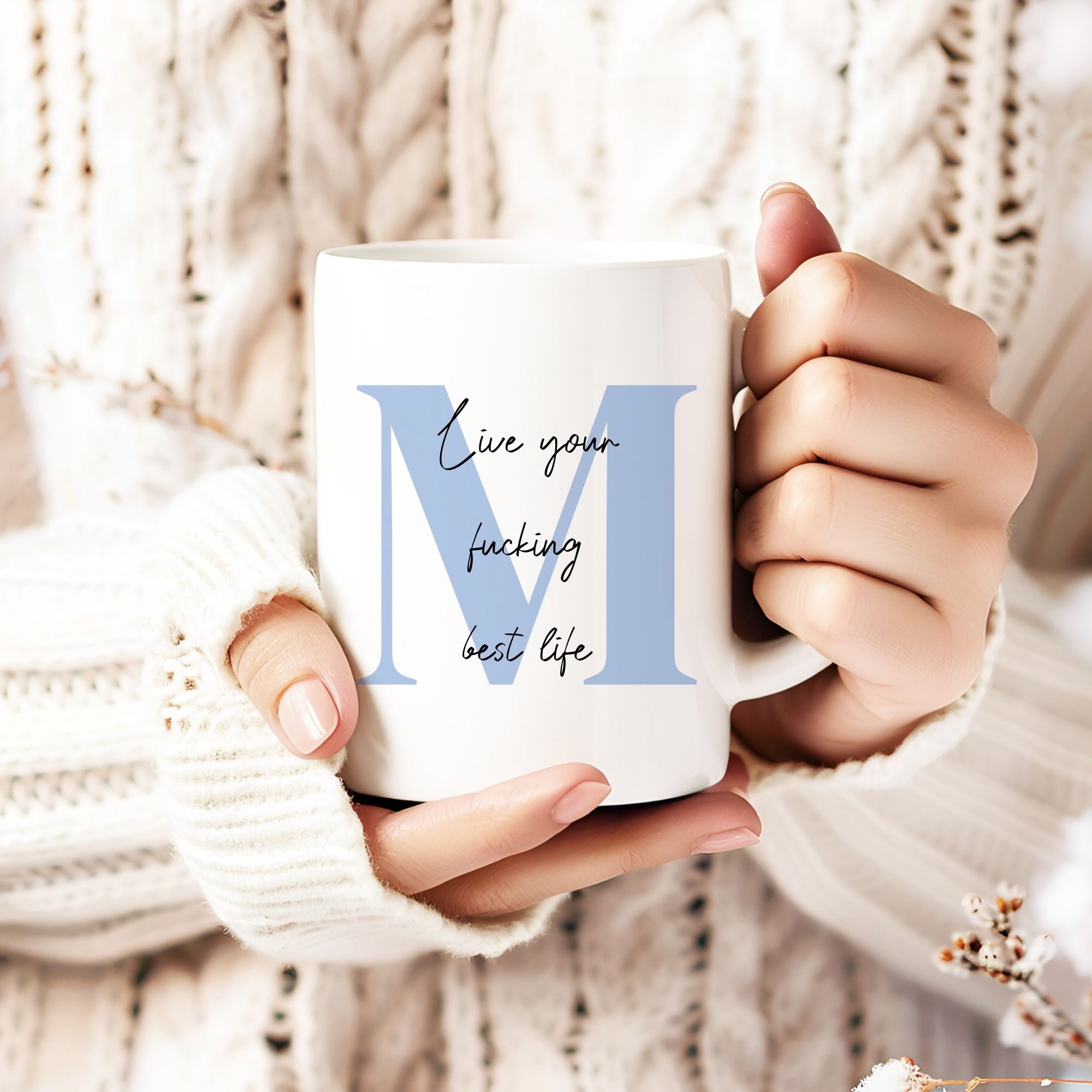 Initsiaaliga personaliseeritav kruus “Live your best life”